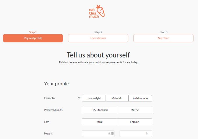 When you first sign up, the site will take you through a quick questionnaire that asks for your health stats and your eating preferences.