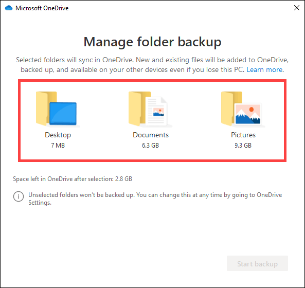 - Pick the folders you want to back up—Desktop, Documents, and Pictures.