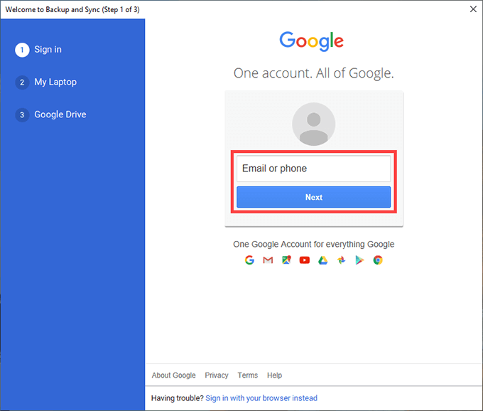 - Download the Backup and Sync installer from Google. Then, run it on your PC to install the Backup and Sync client.