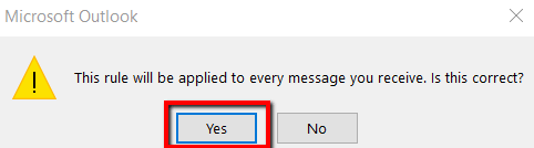 You will receive a message that says: **This rule will be applied to every message you receive. Is this correct? **Select Yes.