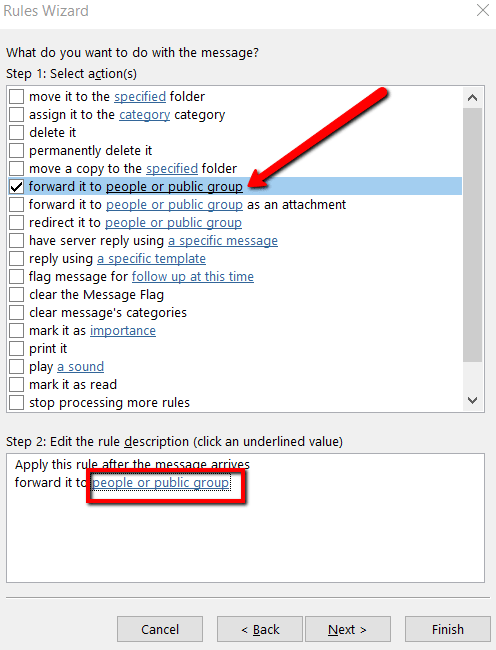 Under Step 2, make sure it also says to forward it to people or public group. Then click the underlined portion of this text.