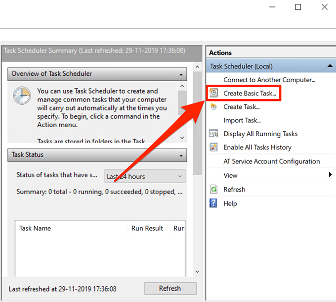 - When the utility opens, you’ll find several options you can choose from. Find the one that says Create Basic Task in the right-sidebar and click on it to open it.