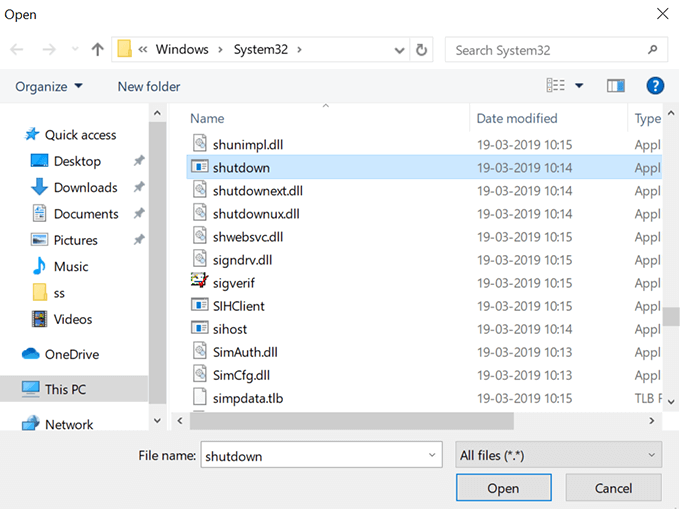 - Head to C:WindowsSystem32 and find and double-click on shutdown.exe.