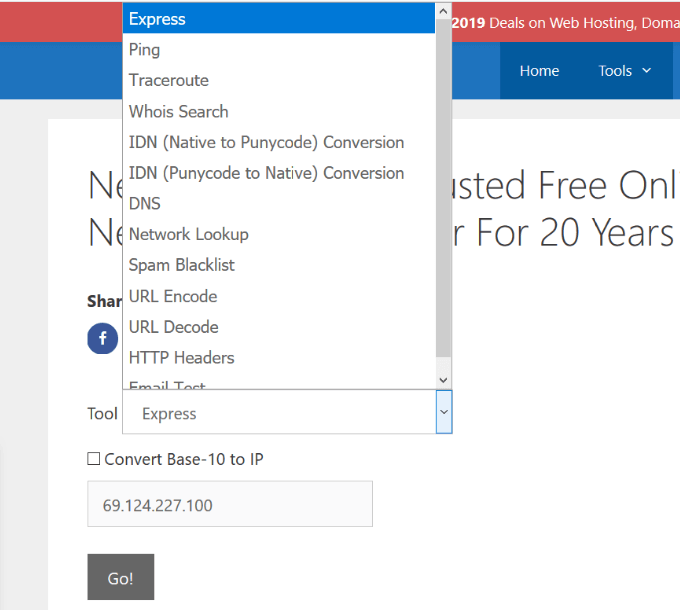 Network Tools provides free network tools including NS Lookup, DNS Lookup, and domain and host information.