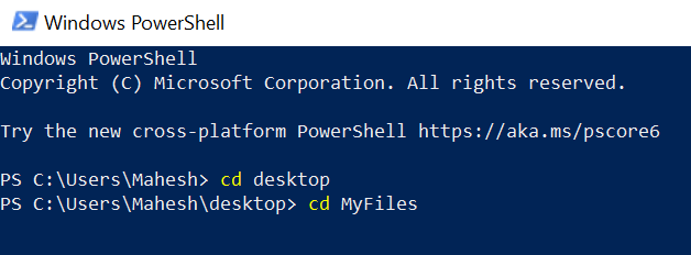 - Run the following command in PowerShell to get to the directory where your files are located. **cd **