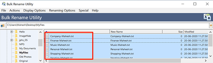 - Select all the files you want to rename on the right-hand side section.