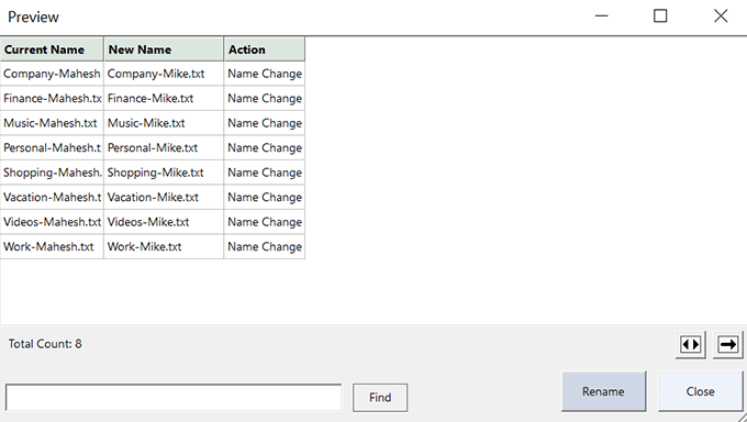 - Click **Rename** to actually rename your files.