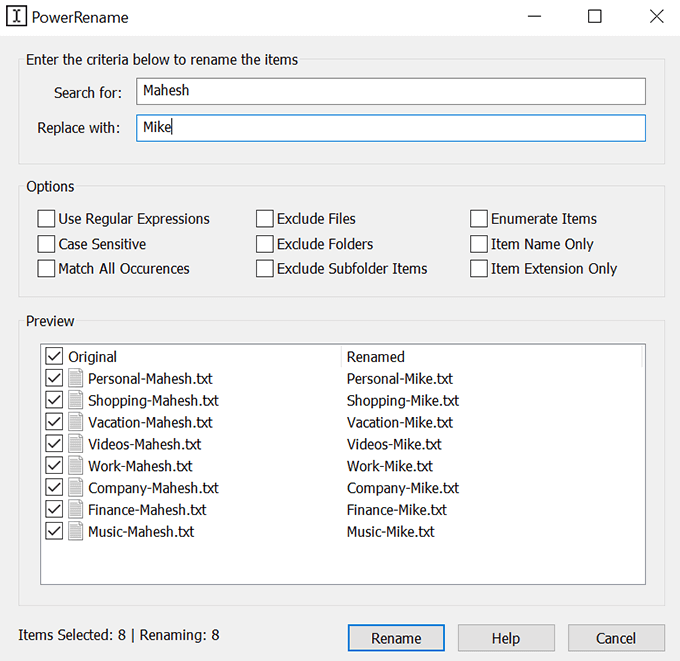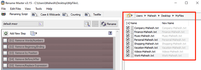 Rename Master is another free tool to batch rename files on a PC.