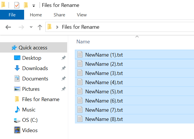 - The name of one of the selected files will become editable. Type the new name you want for all your chosen files and press **Enter**.