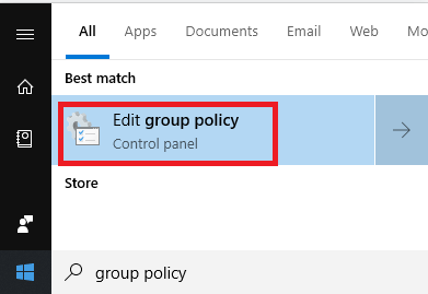 First, press the Windows key and** type Group Policy. Click on the Edit Group Policy **option that appears.
