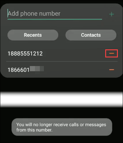- Once they are blocked, it will be added to the list. If we accidentally blocked a good number, tap on the red minus sign next to the number. That will unblock it.