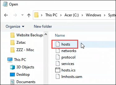 - Now you can see the **hosts** file. Open it.