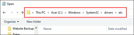 - Navigate to **C:WindowsSystem32Driversetc**