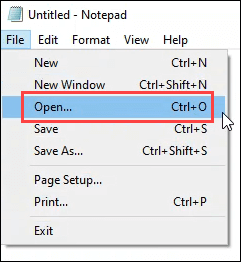 - Click on **File **> **Open**.