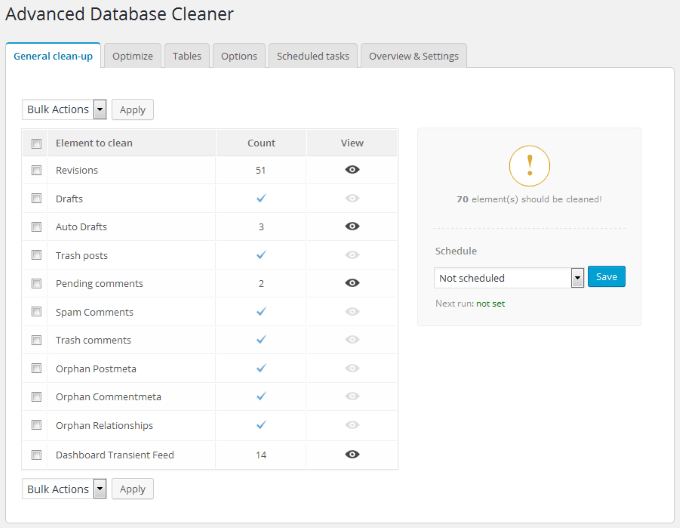 If you want to optimize your WordPress site and also clean up unnecessary data from your database without having to use phpMyAdmin, WP Clean Up Optimizer is the plugin for you.