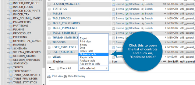 Optimize Your Tables Using phpMyAdmin