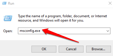 - Type **msconfig.exe** in the Run dialog box and press **Enter**.