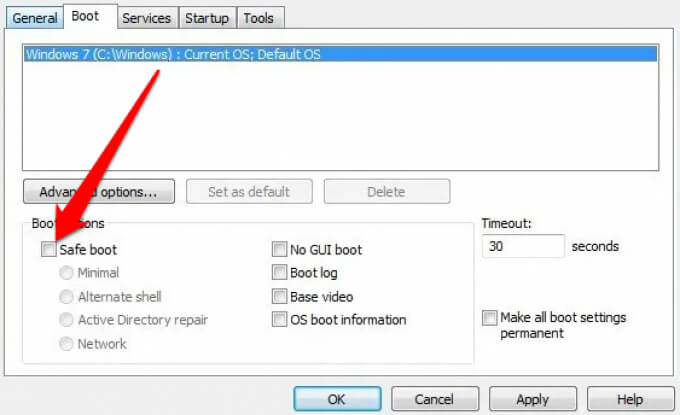 - Once you’re done troubleshooting in Safe Mode, repeat the same steps but deselect the **/SAFEBOOT** option to prevent your computer from starting in Safe Mode.