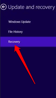 - Select **Update and Recovery** > **Recovery**.