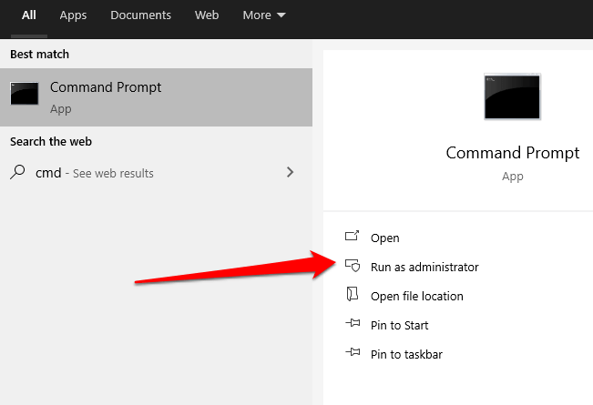 - Type CMD in the search field and select Command Prompt > Run as administrator.
