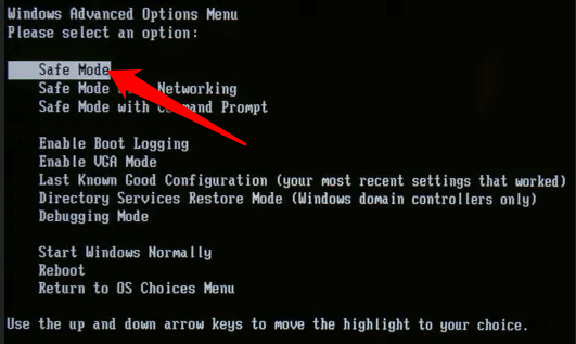 - Select Safe Mode from the Advanced Options Menu and then press Enter.