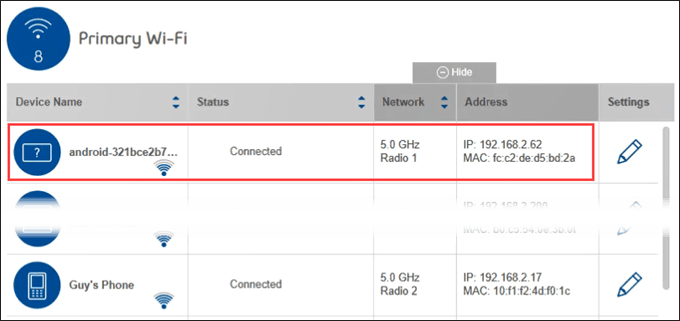 We’ll need to go through the device’s documentation or search the Internet for how to check each device. You can get an idea of the IP addresses by logging in to the WiFi router though. We’ll do that now.