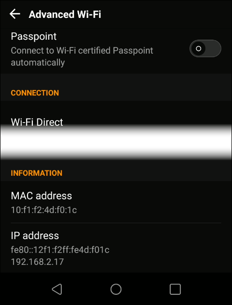The process will vary between different makes and models of phones. The information we’re looking for will be somewhere related to the WiFi settings.