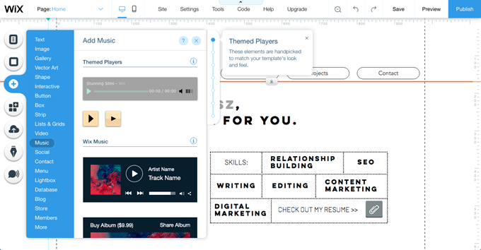 If you’re not at all comfortable or are short on time, Wix Artificial Design Intelligence (ADI) can build a free website for you. But if you have the skills or want to build them and have the time, Wix also gives you the option to have full control over design with the Wix Editor.