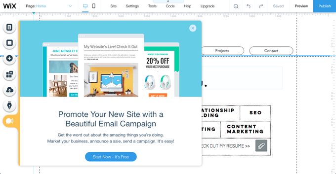 One of the coolest extras Wix offers is email marketing. Once you’ve built your site, you might want to promote it–especially if you’re an aspiring influencer trying to garner followers; a creative professional trying to land a new job or freelance gigs with a sharp new portfolio; or a business trying to attract new customers.