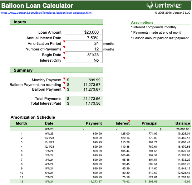 Maybe you have a balloon loan instead of a fixed loan for your mortgage or vehicle. With this Excel calculator template, you can view a summary and amortization schedule with the final payment for your loan.
