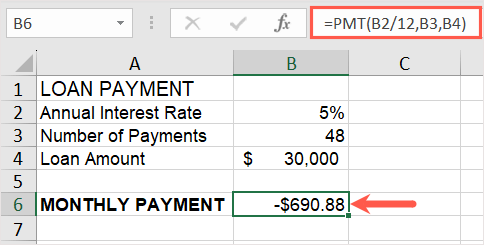 If you’ve been approved for a specific loan amount and interest rate, you can figure out your payments easily. You can then see if you should shop around for a better rate, need to reduce your loan amount, or should increase the number of payments. For this, you’ll use the PMT function in Excel.