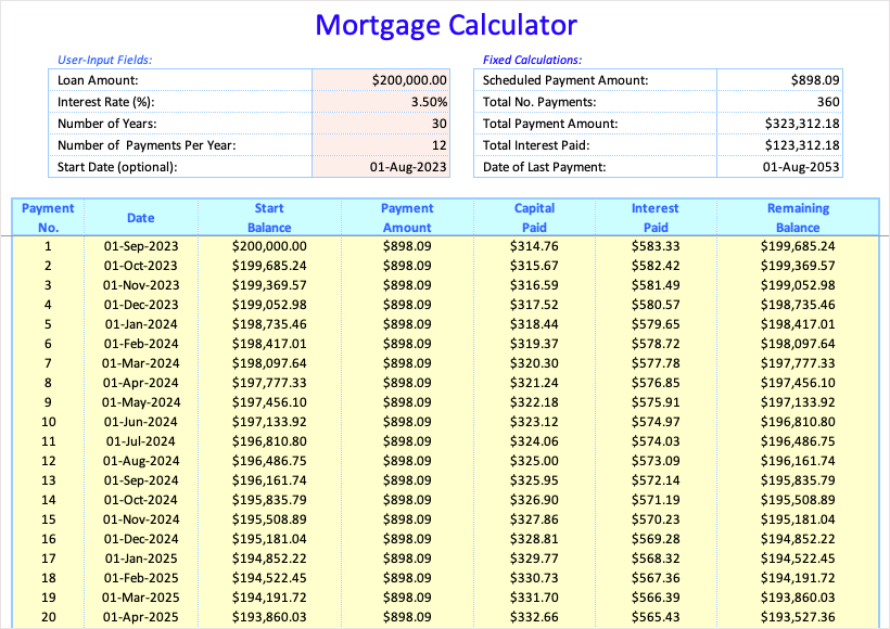 You’ll also see a helpful table with all dates and amounts so you can track the interest paid and your remaining balance as time passes.