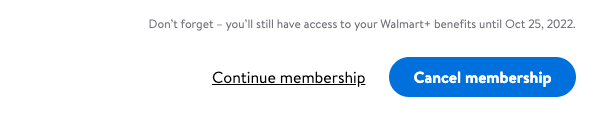 - At the bottom of the page, select Cancel Walmart+.
