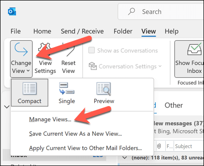 The easiest way to change the view of an Outlook folder is to use the built-in views that Outlook provides. These are preset views that you can choose from a drop-down menu on the View tab.