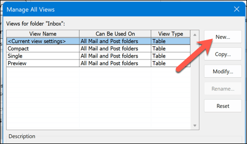 - In the Manage All Views dialog box that appears, click New.