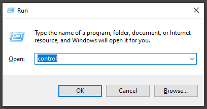 - Open the Control Panel. An easy way to do this is by pressing Win + R, typing **control **and then selecting OK.