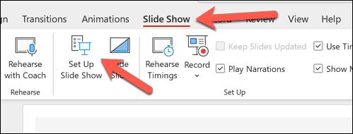 If you only want to hide the animations as you play your presentation, but leave them in place, you can do this by pressing the Slide Show tab on the ribbon.