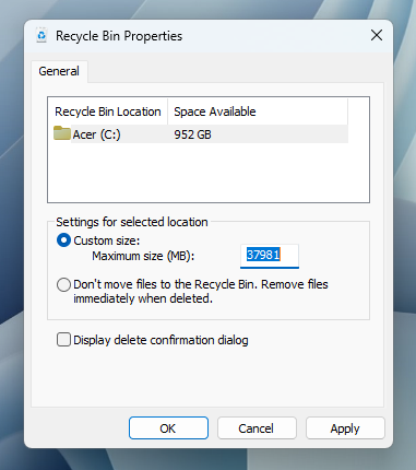 How to Change the Maximum Size of the Recycle Bin