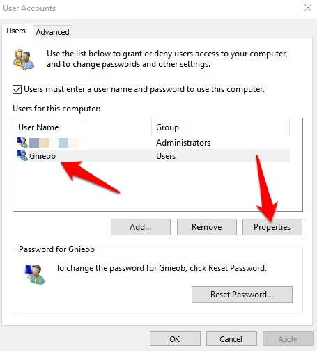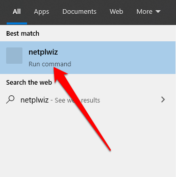 - To do this, click Start and type **netplwiz** in the search box. Click the result to open **User Accounts**.