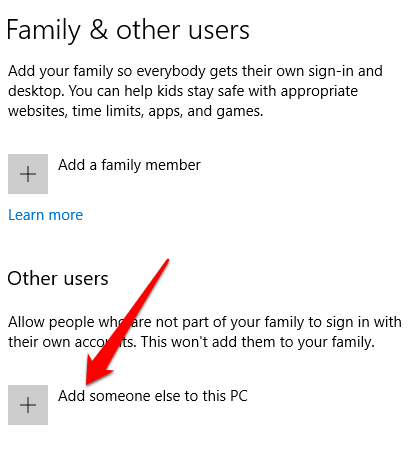 - Select **Add someone else to this PC**.