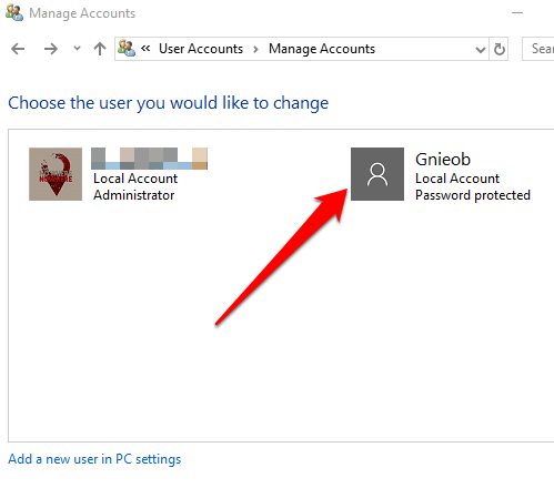 - Choose the user account you’d like to change to administrator.