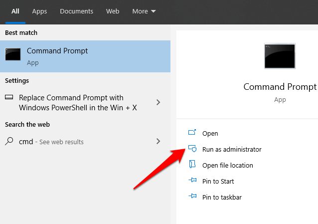 - Click **Start** and type **CMD** in the search box. Select **Command Prompt > Run as administrator**.
