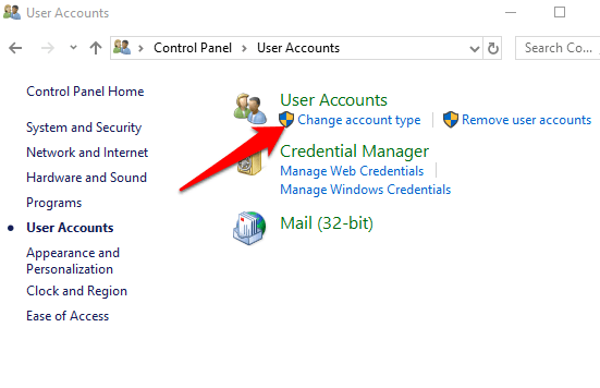 - Click the **Change Account Type** link on the left.