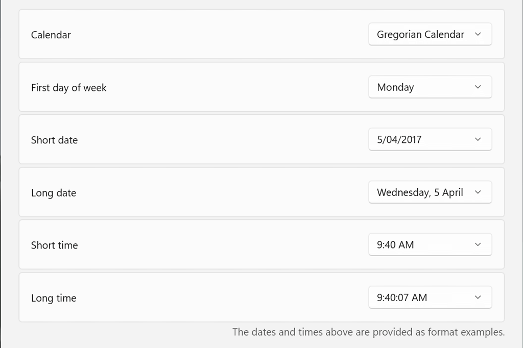- Here, you’ll see several settings for controlling the date and time formats.