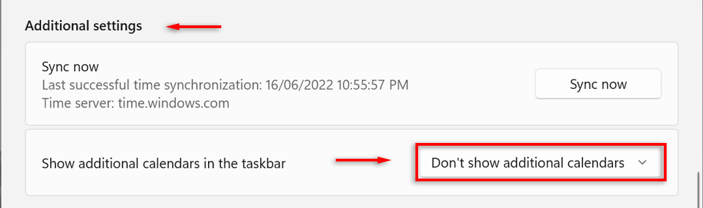 - Calendar: Windows uses Gregorian as the default calendar, which many countries worldwide now use (and this is the only option provided). Windows 11 allows you to display two additional calendars—Simplified Chinese and Traditional Chinese—by selecting Don’t show additional calendars in the taskbar under Date & time > Additional settings.