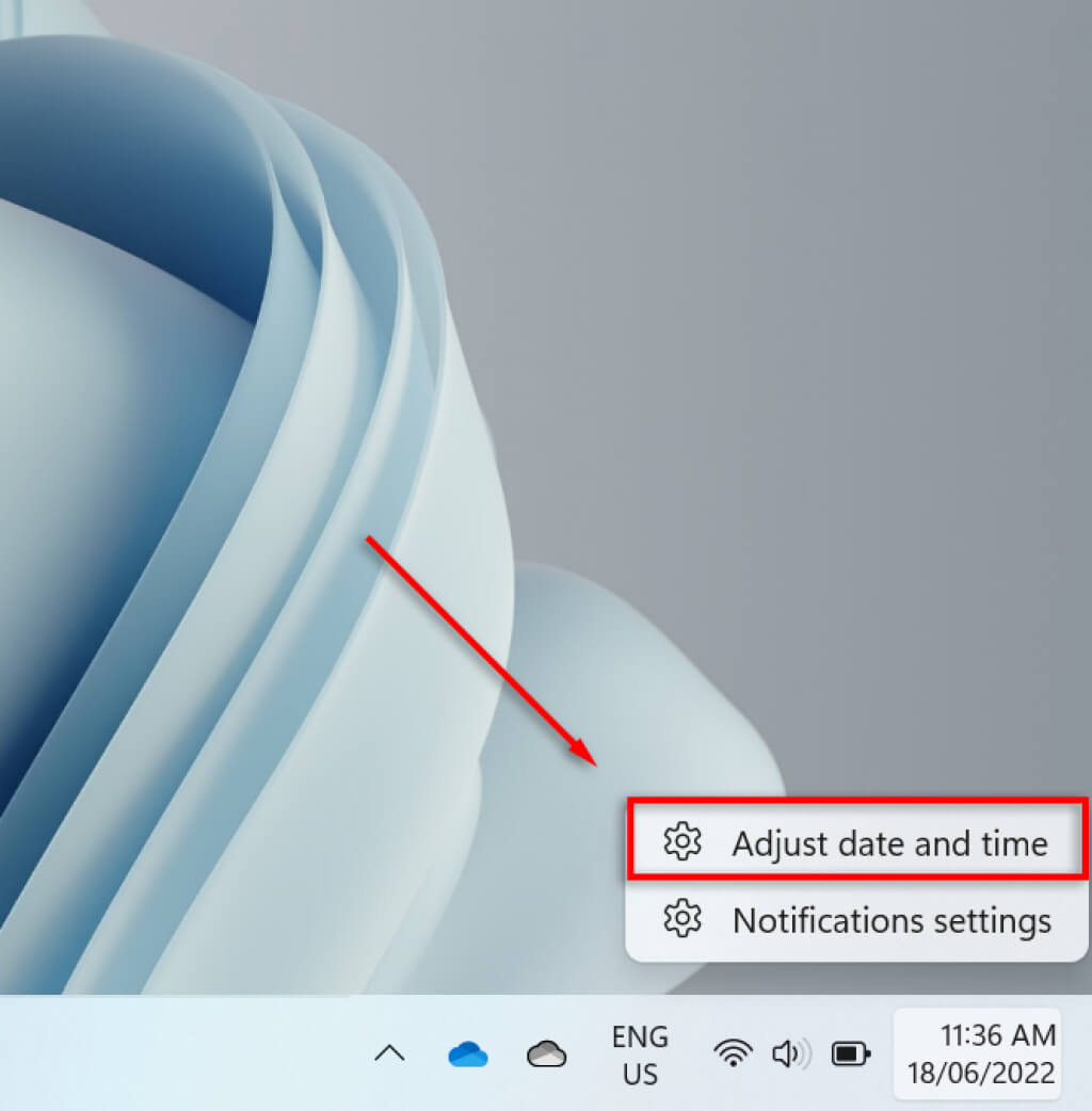 Note: Like in Windows 11, you can right-click the date and time tab and select Adjust date/time to change the time and date format. You can also access these settings via the Control Panel. To do so, open Control Panel > Clock and Region > Date and Time.