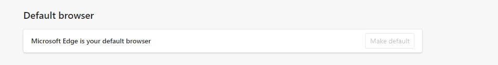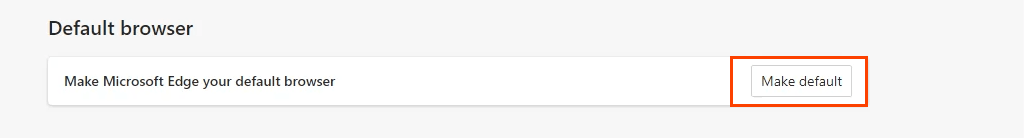 - At the top of the page that opens is the section **Default browser, **and directly below that is the option to **Make Microsoft Edge your default browser**. Select the **Make default **button.