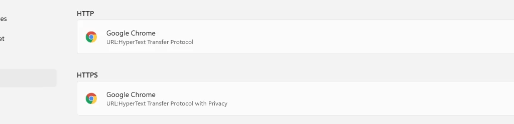 Note that when the default browser is changed for the HTTP link type, Windows automatically changes it for the HTTPS link type.