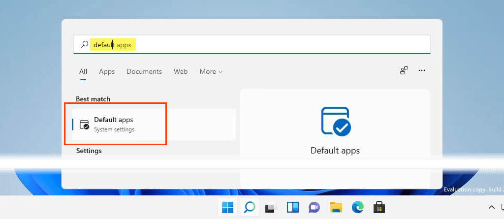 If a browser other than Chrome is being installed, open Default apps manually. Select the **Start **menu and start typing default apps. The top result should be Default apps. Select it.
