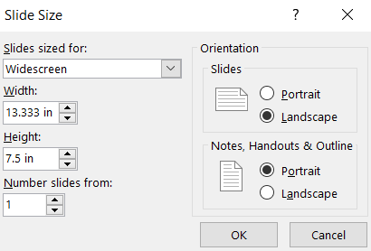 Plus this way, you can select the Orientationfor your slides and notes. This lets you have control over the Widthand Heightof your slides, too.